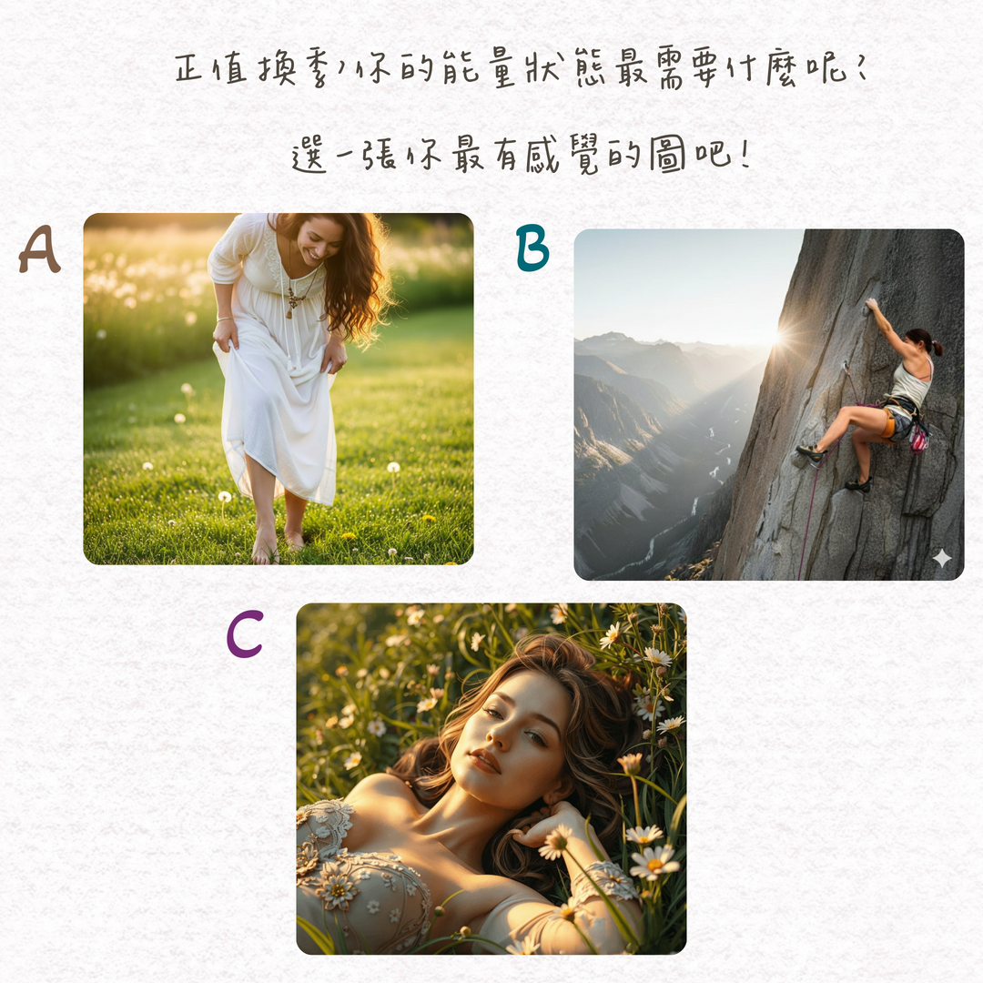 秋日小占卜pegaspirits@gmail.com2025-09-12近期活動 秋日小占卜 正值換季,你的能量狀態最需要什麼呢?選一張你最有感覺的圖吧! __________________________________結果揭曉 你選了哪一張卡呢?來看看你的秋日能量訊息吧! A. 妳最近太多事情牽掛,能量分散,需要讓自己回到中心。 適合香草:甜馬鬱蘭、薰衣草。 B. 妳有話想說卻卡住了,能量停在喉輪,需要勇敢表達。 適合香草:尤加利、薄荷。 C. 妳承受了太多壓力,身心需要好好休息。 適合香草:橙花、洋甘菊。 在【能量占卜 × 香草植物 秋季體驗工作坊】,我們將用占卜引導妳覺察能量狀態,並搭配香草香氣,幫妳找到專屬的秋日力量 妳抽到的是哪一張呢?秋季體驗工作坊報名連結:https://www.accupass.com/go/autumnherb pegaspirits@gmail.com 上一 文章 創業女孩的勇氣 相關文章 找尋你的「秋日能量密碼」2025-09-06 妳也工作忙碌不堪,卻常失眠嗎?2025-09-06 能量占卜 × 香草植物秋季體驗工作坊2025-08-28 在Pegaspirits 也可以使用LINEPay囉~2025-08-07 試營運優惠實施中2025-06-27